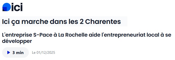 Être invité sur la rubrique “Ici ça marche” de France Bleu La Rochelle, c’est bien plus qu’une mise en lumière : c’est la reconnaissance du rôle que joue S-PACE depuis 20 ans auprès des entrepreneurs locaux. Dans ce portrait diffusé sur Ici La Rochelle, Olivier Kerr, gérant de S-PACE, revient sur notre mission, nos valeurs et sur l’accompagnement que nous proposons chaque jour à celles et ceux qui créent, développent ou consolident leur activité.